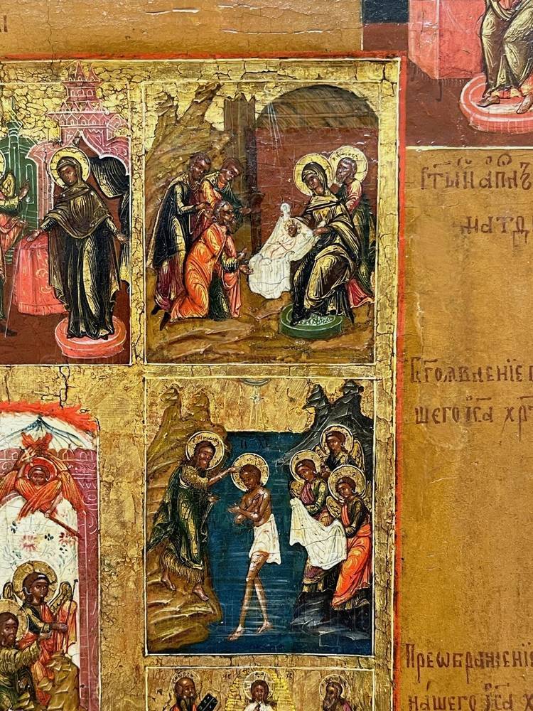 Икона "Двунадесятые Праздники с евангелистами"