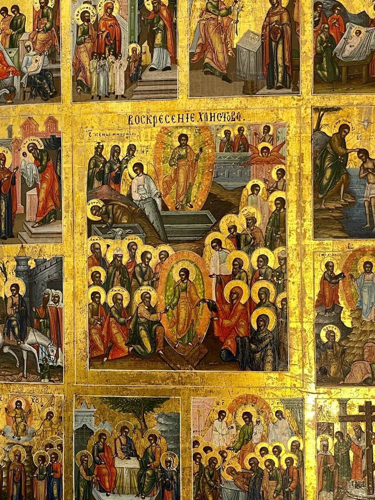 Дерево, левкас, темпера. Состояние сохранности хорошее. Проведена качественная реставрация