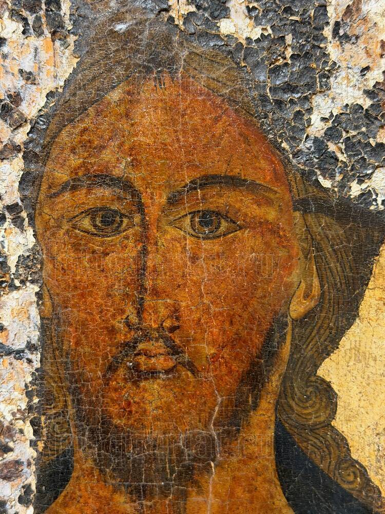 Особую ценность памятнику придаёт факт отсутствия позднейших реставрационных вмешательств, что становится редкостью в современной практике. Икона сохранила аутентичную поверхность с естественной патиной веков, позволяющую изучать оригинальную технику письма без искажений, вносимых реставрацией. Следы времени — осыпи, потёртости, сколы — свидетельствуют о подлинности предмета и его реальном бытовании на протяжении столетий. Лик Спасителя, выполненный в традициях новгородской школы, отличается характерной для этого региона монументальностью и строгостью образа, что соответствует духовным исканиям XVI века.