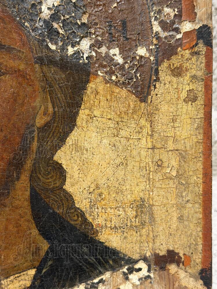 Новгородская иконописная школа XVI столетия занимает важнейшее место в истории древнерусского искусства, представляя собой завершающий этап развития средневековой традиции перед началом процессов, связанных с влиянием западноевропейской живописи. В этот период новгородские мастера сохраняли верность византийским канонам, выработанным столетиями, продолжая традиции монументального письма с характерной колористической сдержанностью и духовной концентрацией образов. Оплечные изображения Христа получили особое распространение в домовых иконостасах и как моленные образы в келейной практике, что объясняет их значительное количество в музейных и частных собраниях. Однако иконы с сохранившейся авторской живописью XVI века без позднейших записей и переписей представляют редкость на современном антикварном рынке. Большинство памятников этого времени прошли через многократные реставрации, что затрудняет изучение оригинальной техники. Присутствие частичной реконструкции XIX века, охватившей фон и поля, не умаляет художественной и исторической ценности памятника, поскольку лик — наиболее значимая часть иконы — остался неприкосновенным. Такие экземпляры привлекают внимание музейных специалистов и серьёзных коллекционеров, ценящих возможность соприкоснуться с подлинной живописью эпохи без реставрационных наслоений. Инвестиционный потенциал нереставрированных икон с авторской живописью XVI века стабильно высок, поскольку каждое десятилетие количество доступных на рынке аутентичных памятников сокращается вследствие их перехода в музейные и закрытые частные собрания.