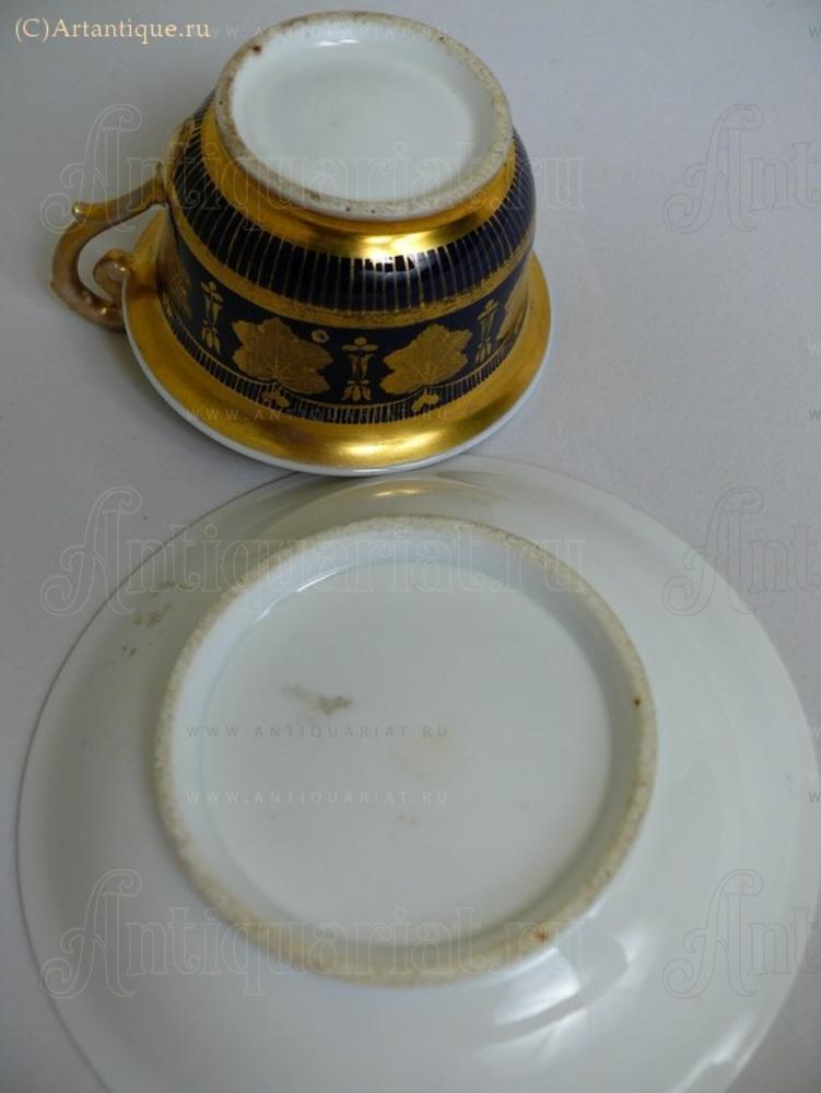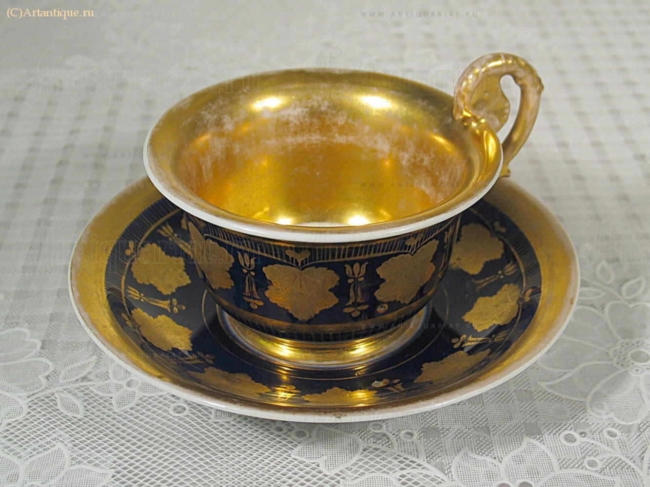 Великолепная ампирная чашка с изящно изогнутой ручкой и стильной росписью.