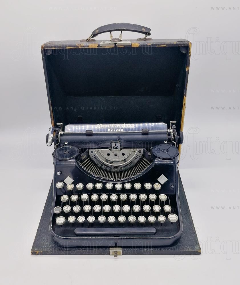 Портативная печатная машинка с четырёхрядной клавиатурой выпущена в начале 30-х годов ХХ века в Германии на пpeдпpиятии Mеrcedеs Bürоmаsсhinеn-Wеrke АG - Zеlla-Мehlis/Thür. В оригинальном кофре и хорошей сохранности.