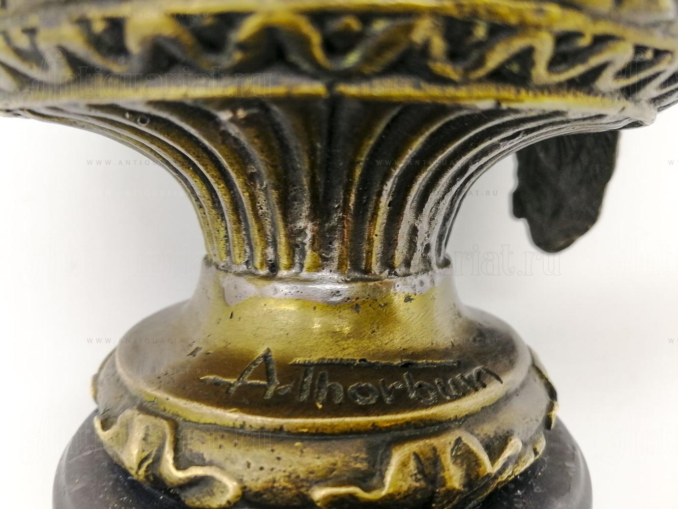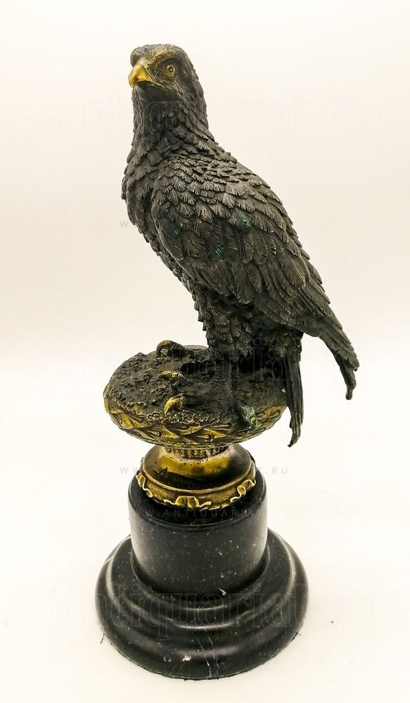 Редкая антикварная бронзовая скульптура, изображающая хищную птицу, выполненную в изящной манере раннего ар-нуво. Скульптура установлена на массивном мраморном основании и подписана именем A. Thorburn, что позволяет связать её с творчеством Арчибальда Торберна (Archibald Thorburn, 1860–1935) — выдающегося шотландского художника-анималиста.