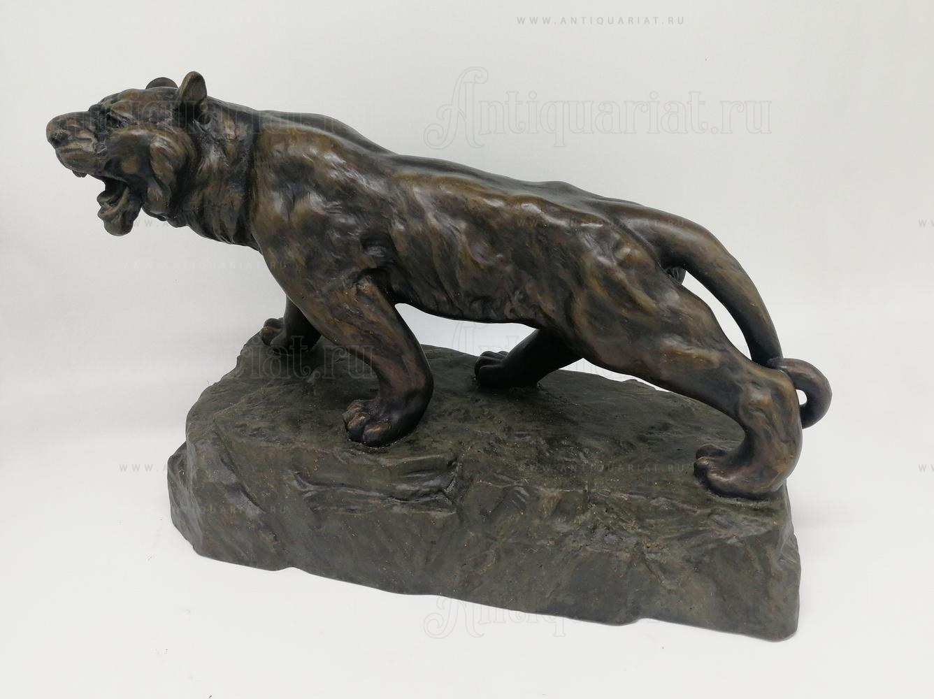 На поверхности скульптуры имеются малозаметные следы реставрации, характерные для керамики подобного возраста, однако пластика формы, силуэт, рельефная проработка мускулатуры и выразительность головы животного хорошо сохранились. Вмешательства выполнены аккуратно и не нарушают целостного восприятия произведения при обычном рассматривании, что позволяет говорить о хорошем состоянии предмета и его пригодности для серьёзной коллекции анималистики первой половины XX века.