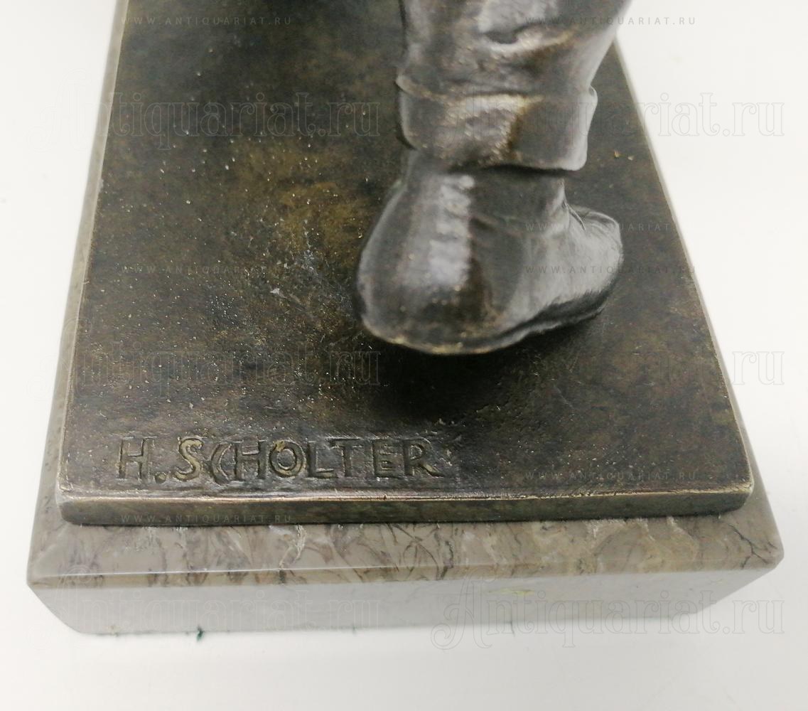 Автор скульптуры - Hendrik Scholter, датский скульптор, работавший в первой трети 20 века. Подпись на основании - "H. SCHOLTER". Наиболее известная его скульптура "Труд и Управление" недавно была продана на аукционе за 15000 евро.