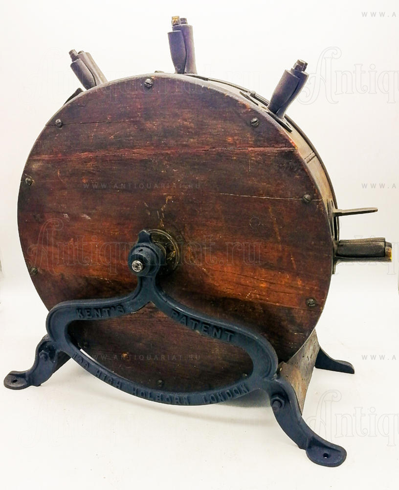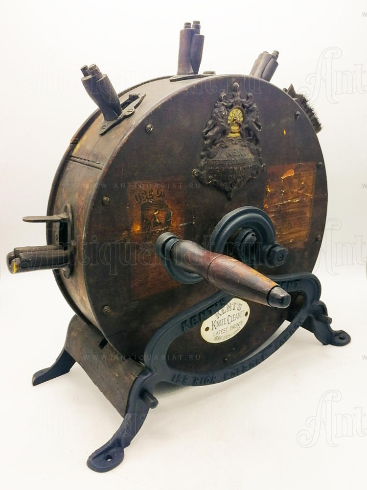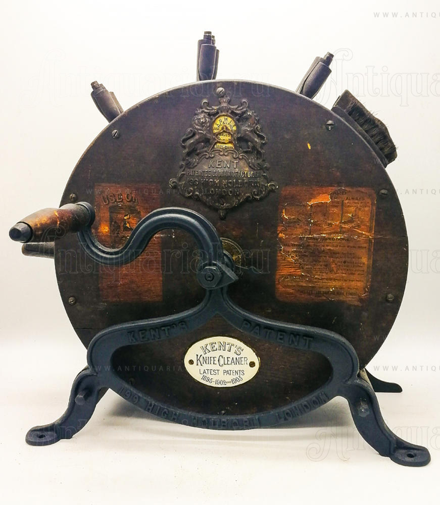 Это удивительное историческое произведение было изобретено и запатентовано англичанином Джорджем Кентом. Кент родился в 1806 году и учился в Челси (район Лондона, известный своими жителями высшего сословия и элитными магазинами). Некоторое время он работал изготовителем оконных жалюзи, пока работал над изобретением средства для чистки ножей. 12 июня 1844 года ему был выдан патент на машину для чистки ножей, когда он открыл магазин по адресу 329 Strand, 218 Regent St и 101 Holborn до 1854 года и по адресу High Holborn 199 с 1854 года до своей смерти. Хотя устройство для чистки ножей было его заявкой на славу и самым выдающимся предметом инвентаря, он также производил другие домашние машины, позволяющие экономить время, в том числе венчики, сита, сита и стиральные машины. Он умер 23 мая 1890 года.
