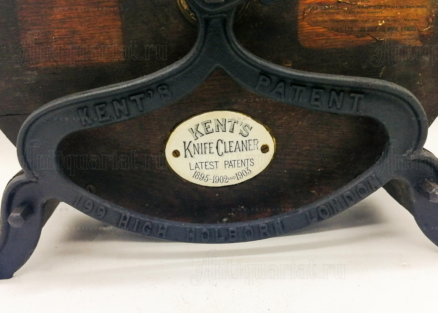 Надписи и таблички на корпусе: "KENT's Knife Cleaner, Latest Patents 1895 - 1902",