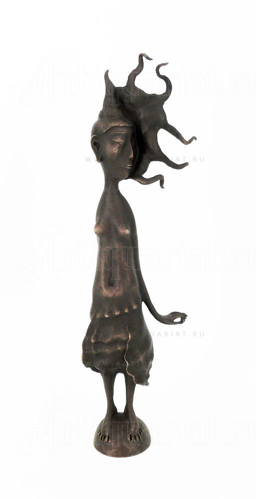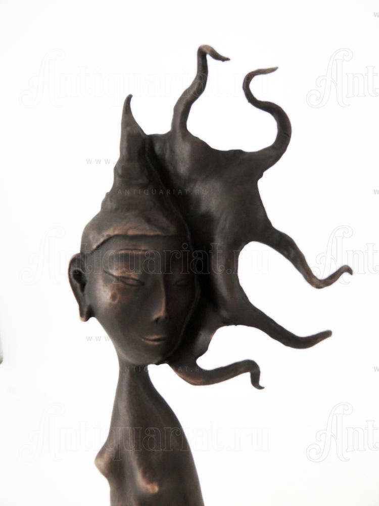 В утонченном силуэте юной девушки скульптор воспевает вечную молодость и красоту, сопоставляя ее с драгоценной жемчужиной. С первого взгляда все внимание зрителя приковывает спокойное, но яркое и живое лицо женщины, обрамленное, словно короной, развевающимися локонами. И только потом наблюдатель замечает круглую жемчужинку в небрежно сжимающей ее изящной руке. Гармоничная прелесть женского образа, его природная легкость и наивность вызывают только самые светлые и добрые ассоциации.