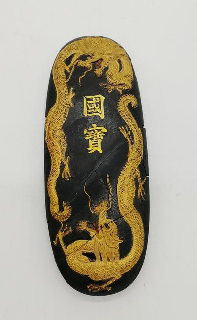 Надпись по центру: 國寶 (Guó bǎo) — «Национальное сокровище» или «Сокровище государства». Это подчёркивает исключительное значение предмета — либо как символа, либо как художественного изделия высокого уровня.