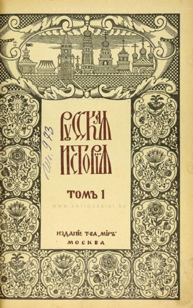Покровский, М.Н. Русская история с древнейших времен / при участии Н. Никольского и В. Сторожева.В 5 т. Т. 1-5. М.: Изд. Т-ва «Мир», 1913-1914.