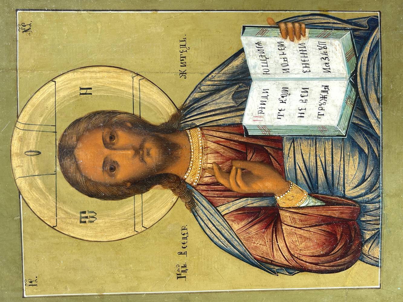 Дерево, левкас, темпера. Состояние сохранности хорошее. Без реставрации.