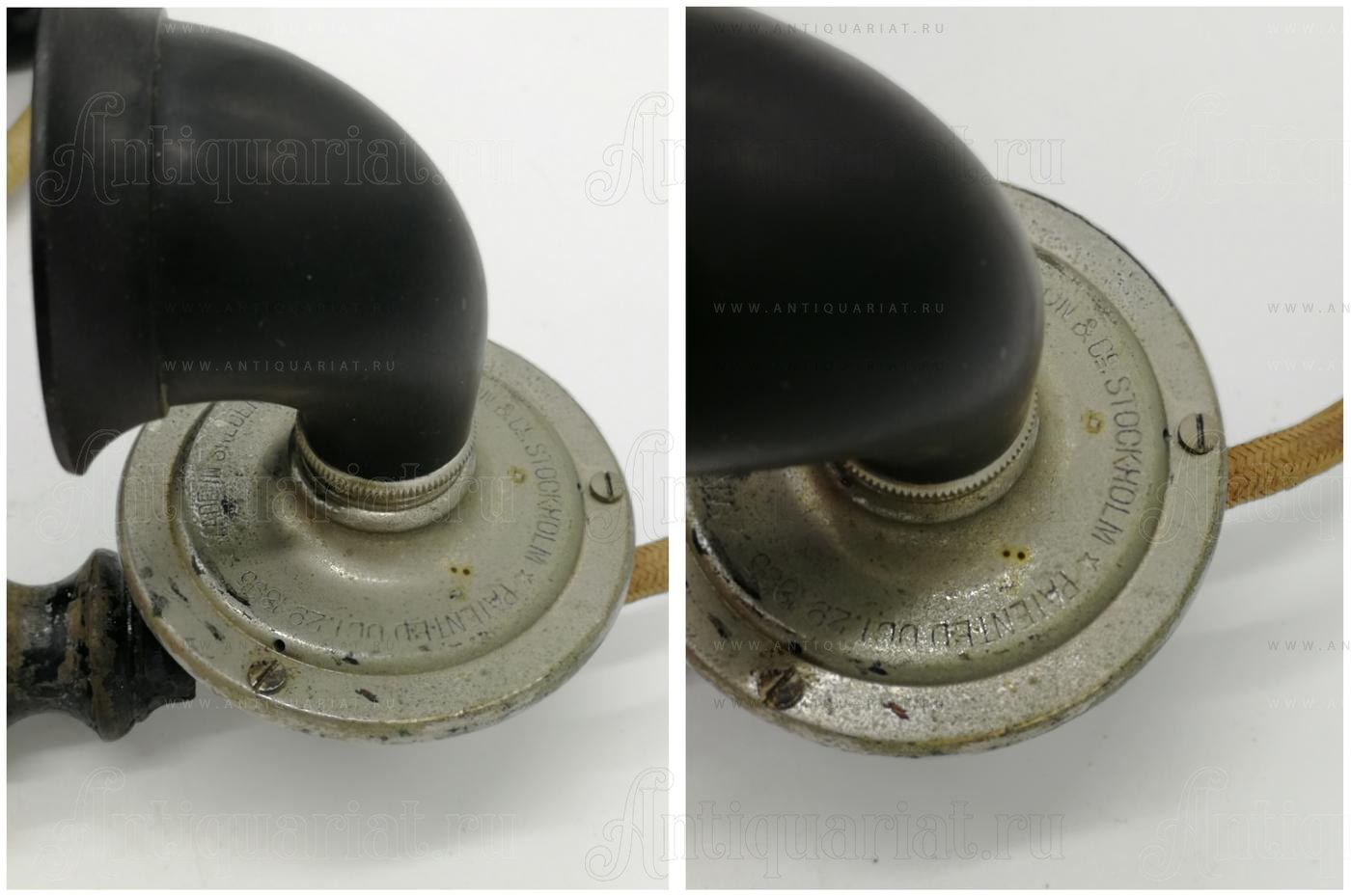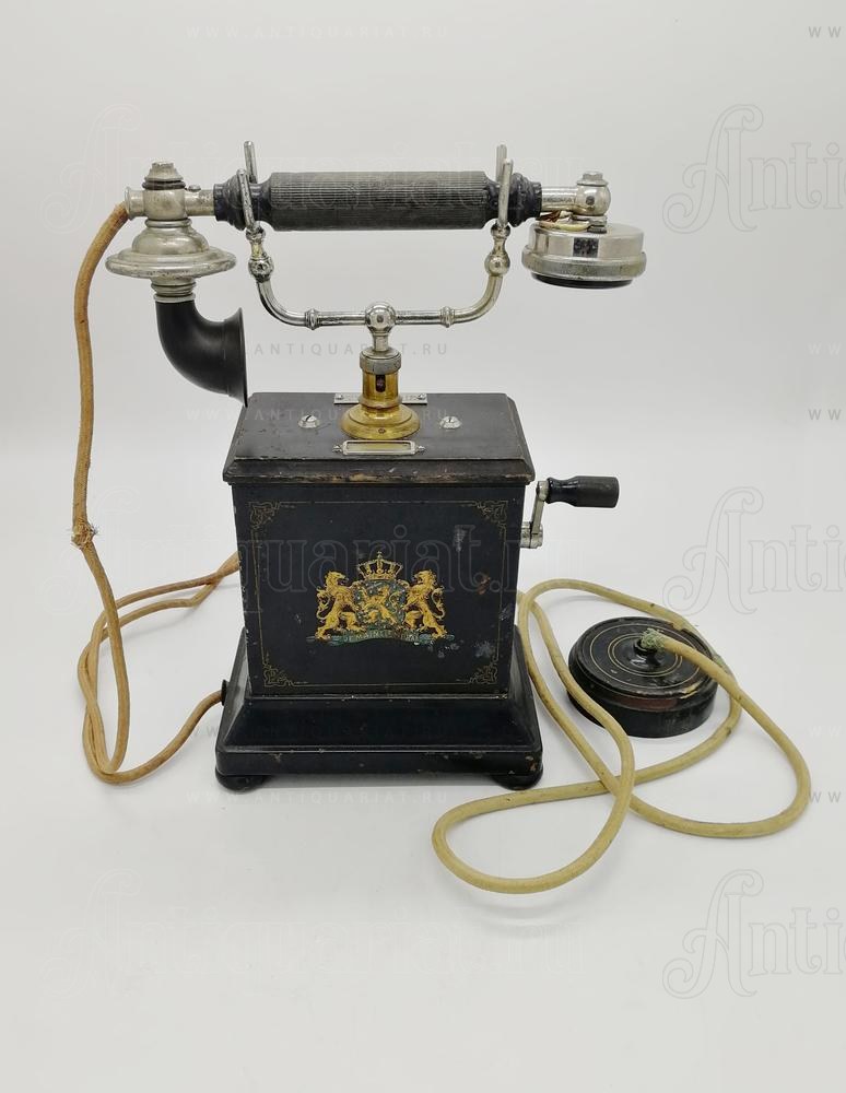 Телефонный аппарат с трёхмагнитным индуктором. Модель 1895 года. Изготовлен в Швеции для Нидерландов.Имеются следы потёртостей характерные возрасту предмета (см. фото).