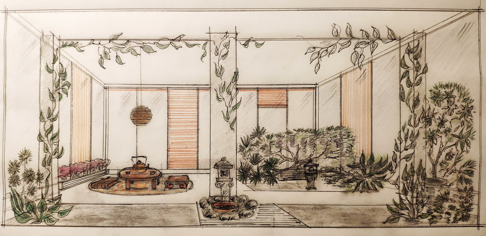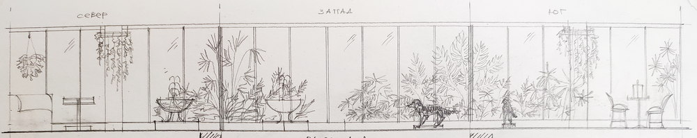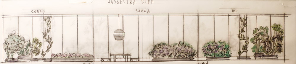 Второй вариант – азиатский садик, который мы ласково назвали «Чайная церемония». Интерьер зимнего сада минималистичен и гармоничен. Растения подобраны для западного направления окон, но большая часть из них будет прекрасно чувствовать себя и в восточном направлении. Среди растений Schlumbergera, Schefflera, Mandevilla, Anthurium и многие другие. В интерьере помещения сочетаются теплые постельные тона, что подразумевает собой цвета восходящего солнца. Дизайнер расположил в интерьере сада «Дома духов» - весьма спорный с точки зрения всевозможных религий, но прекрасно вписывающийся в данную картину предмет.