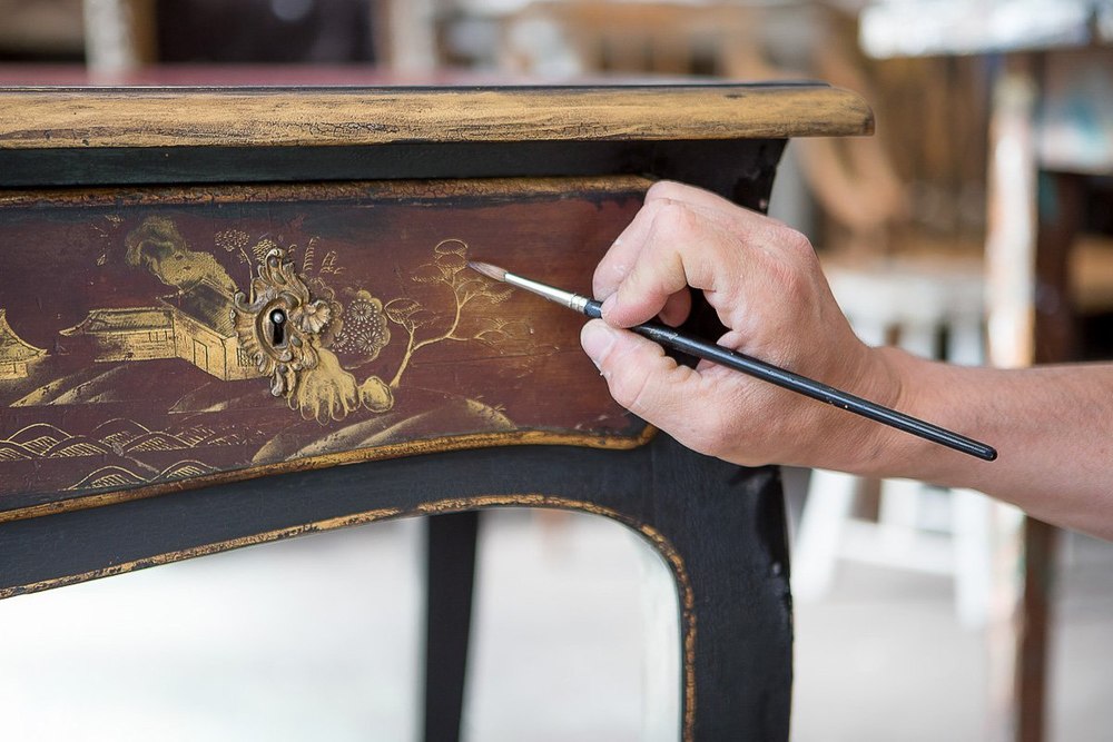 Приемы. Основные, базовые приемы известны каждому начинающему реставратору, их легко можно найти в сети в общедоступных источниках по топовым запросам: «как сделать матовую поверхность на шеллаке», «как отреставрировать старый комод», «как инсценировать бронзу», «как сделать патину своими руками» и т.д. В большинстве своем это обобщающие статьи, а вот дальше начинается самое интересное – а именно, углубление в таинственный мир реставрации, самостоятельное изучение нескончаемых стилей, эпох, поиск определенных техник прошлого.… Здесь стоит отметить, что в абсолютном большинстве, реставраторы люди довольно скрытные. Хорошие реставраторы годами наживают способы и приемы при помощи которых отрабатывают свои техники, эти знания и умения становятся индивидуальными, и, не каждый реставратор захочет рассказывать о них.