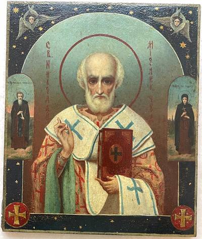 Дерево, левкас, масло. Состояние сохранности хорошее. Без реставрации