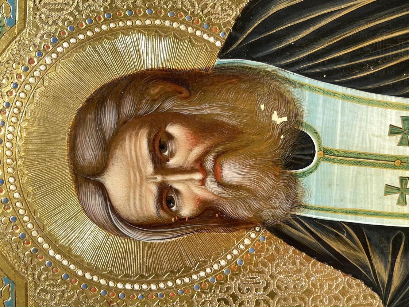 Дерево, левкас, темпера, позолота. Состояние сохранности отличное. Без реставрации