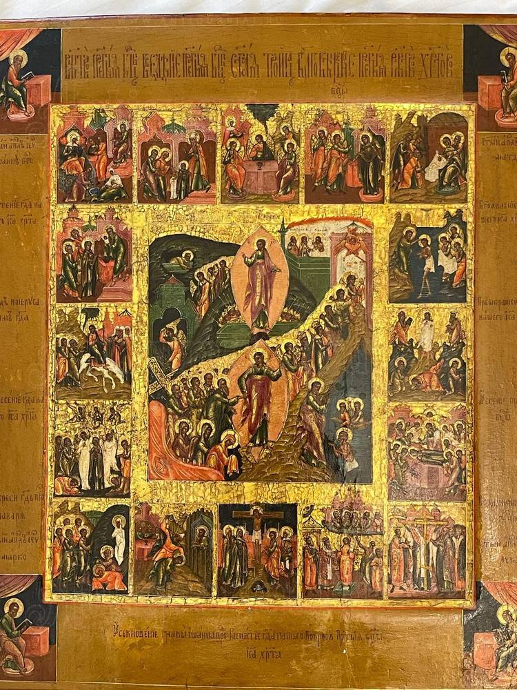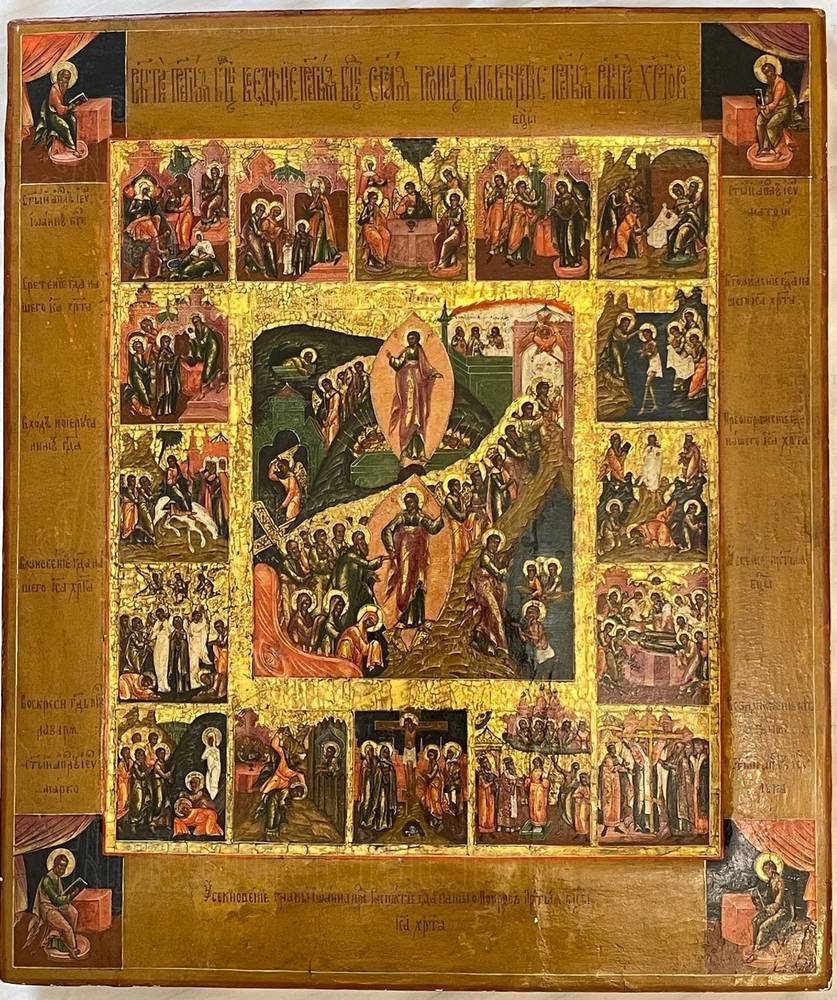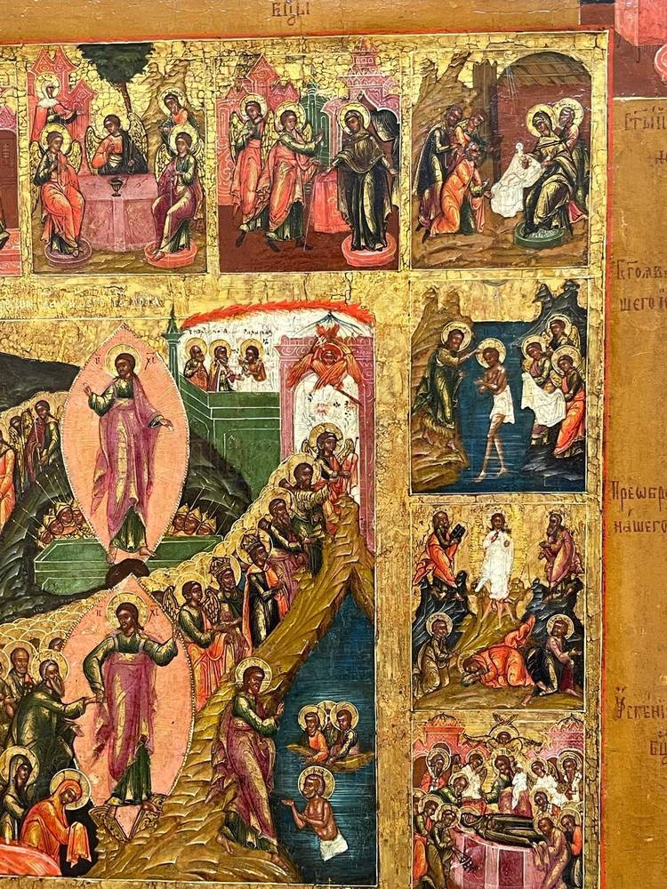 Икона "Двунадесятые Праздники с евангелистами"