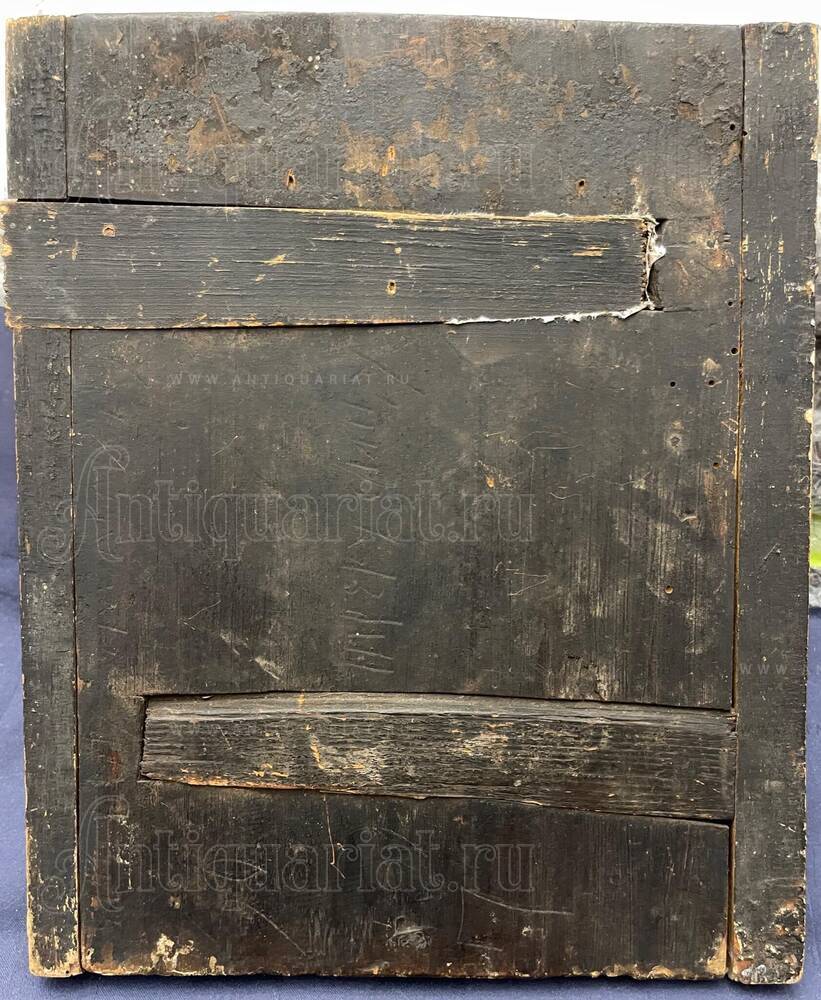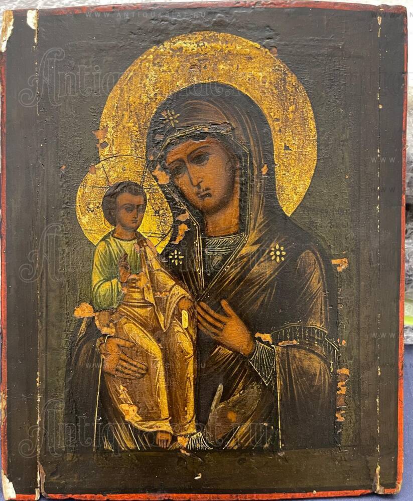 Иконография Троеручицы восходит к средневековому преданию о чудесном исцелении преподобного Иоанна Дамаскина, которому была приставлена отсечённая рука молитвами перед образом Богоматери. В благодарность к иконе была приложена серебряная рука, давшая название этому изводу. На Руси почитание Троеручицы получило широкое распространение с XVII века, когда список чудотворного образа был принесён в Москву сербскими монахами. В XIX столетии этот иконографический тип стал одним из наиболее популярных в домашнем благочестии, к Троеручице обращались с молитвами об исцелении болезней рук, о помощи в рукоделии и всяком ручном труде. Центральная Россия в XIX веке была центром производства икон для широкого распространения — мастерские Москвы, Мстёры, Палеха и других иконописных центров создавали образы для церквей и домашних иконостасов по всей империи. Иконы этого времени отличаются разнообразием художественных решений — от строгих академических образцов до народных провинциальных интерпретаций. Данный памятник относится к традиционному направлению, сохраняющему связь с древнерусской иконописной школой через тёмный колорит, уплощённость форм и строгость композиции. Отсутствие реставрационных вмешательств делает эту икону особенно ценной для понимания подлинного состояния памятников XIX века, большинство которых подвергались многократным расчисткам и записям. Для коллекционеров религиозного искусства такие нереставрированные образы представляют редкую возможность приобретения подлинного свидетельства духовной культуры императорской России.