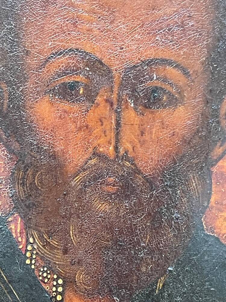 Состояние иконы соответствует её почтенному возрасту и свидетельствует об аутентичности памятника. Олифа потемнела естественным образом, что характерно для икон девятнадцатого века, находившихся в условиях постоянного использования и воздействия свечного тепла в домашнем или храмовом иконостасе. Левкас сохранил целостность, что указывает на качественную подготовку основы и профессионализм мастера. Золочение на нимбе частично сохранило первоначальный блеск, просматриваясь сквозь слой потемневшей олифы. Красочный слой не имеет следов позднейших записей или реставрационных вмешательств, что представляет особую ценность для коллекционеров, поскольку позволяет видеть оригинальную работу иконописца в её подлинном состоянии.