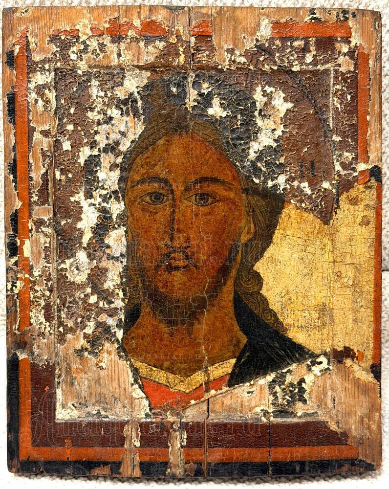 Особую ценность памятнику придаёт факт отсутствия позднейших реставрационных вмешательств, что становится редкостью в современной практике. Икона сохранила аутентичную поверхность с естественной патиной веков, позволяющую изучать оригинальную технику письма без искажений, вносимых реставрацией. Следы времени — осыпи, потёртости, сколы — свидетельствуют о подлинности предмета и его реальном бытовании на протяжении столетий. Лик Спасителя, выполненный в традициях новгородской школы, отличается характерной для этого региона монументальностью и строгостью образа, что соответствует духовным исканиям XVI века.