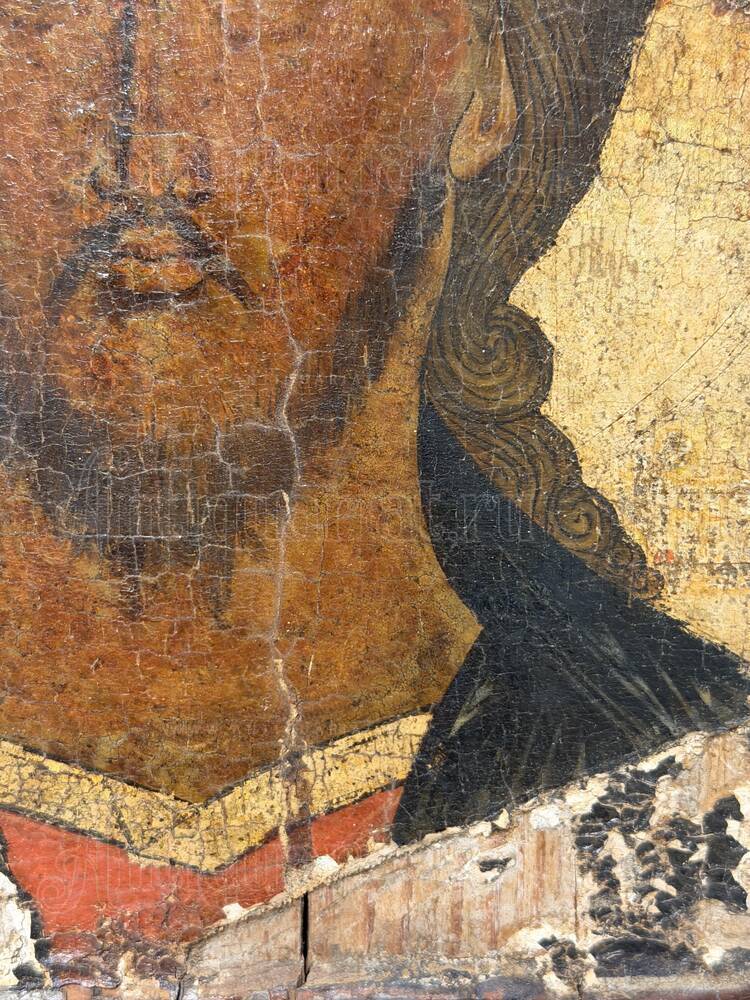 Новгородская иконописная школа XVI столетия занимает важнейшее место в истории древнерусского искусства, представляя собой завершающий этап развития средневековой традиции перед началом процессов, связанных с влиянием западноевропейской живописи. В этот период новгородские мастера сохраняли верность византийским канонам, выработанным столетиями, продолжая традиции монументального письма с характерной колористической сдержанностью и духовной концентрацией образов. Оплечные изображения Христа получили особое распространение в домовых иконостасах и как моленные образы в келейной практике, что объясняет их значительное количество в музейных и частных собраниях. Однако иконы с сохранившейся авторской живописью XVI века без позднейших записей и переписей представляют редкость на современном антикварном рынке. Большинство памятников этого времени прошли через многократные реставрации, что затрудняет изучение оригинальной техники. Присутствие частичной реконструкции XIX века, охватившей фон и поля, не умаляет художественной и исторической ценности памятника, поскольку лик — наиболее значимая часть иконы — остался неприкосновенным. Такие экземпляры привлекают внимание музейных специалистов и серьёзных коллекционеров, ценящих возможность соприкоснуться с подлинной живописью эпохи без реставрационных наслоений. Инвестиционный потенциал нереставрированных икон с авторской живописью XVI века стабильно высок, поскольку каждое десятилетие количество доступных на рынке аутентичных памятников сокращается вследствие их перехода в музейные и закрытые частные собрания.