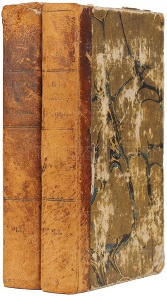 В двух полукожаных переплетах эпохи. Потертости переплетов. С оборотной стороны титульных листов печати Императорской Медико-хирургической академии. Печать на титульном листе ч. 1 заклеена бумагой. Надрывы титулов, реставрация титула к ч. 1 по нижнему полю. «Лисьи» пятна.