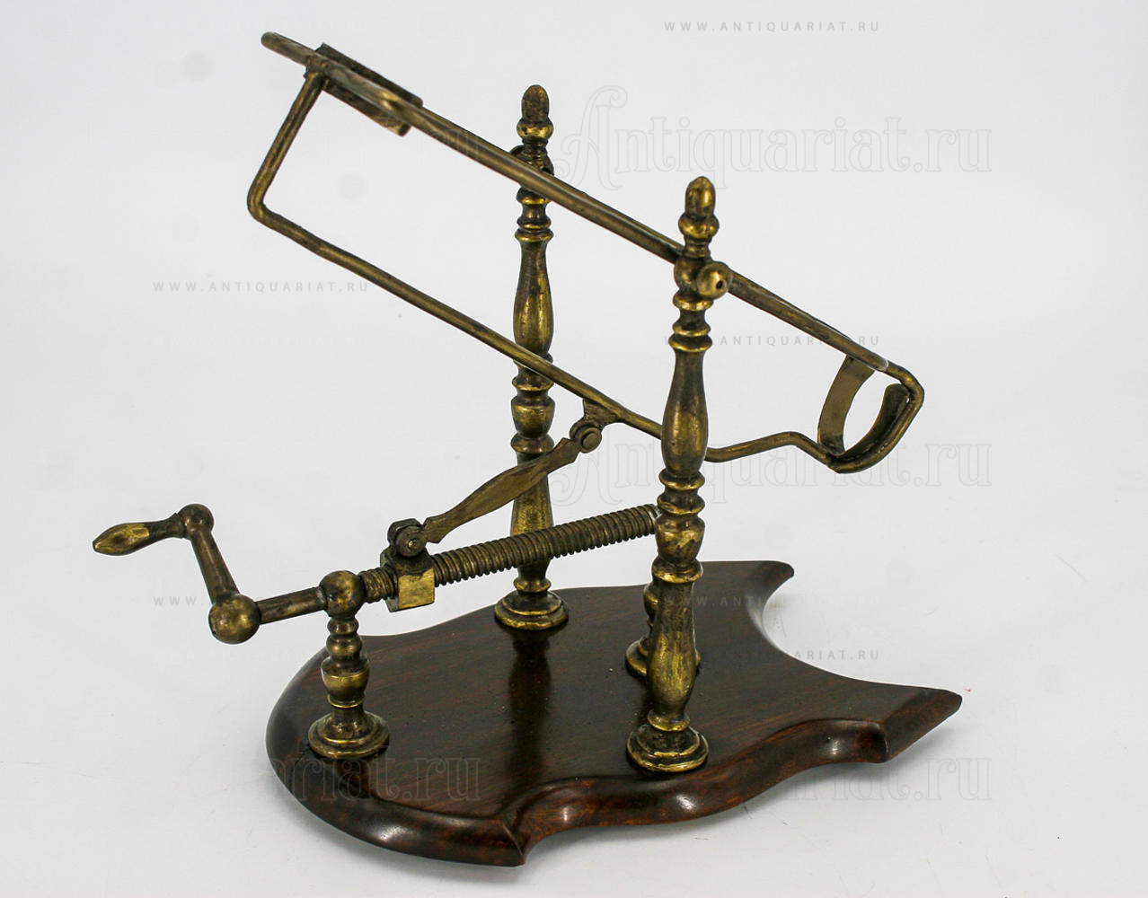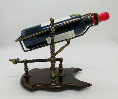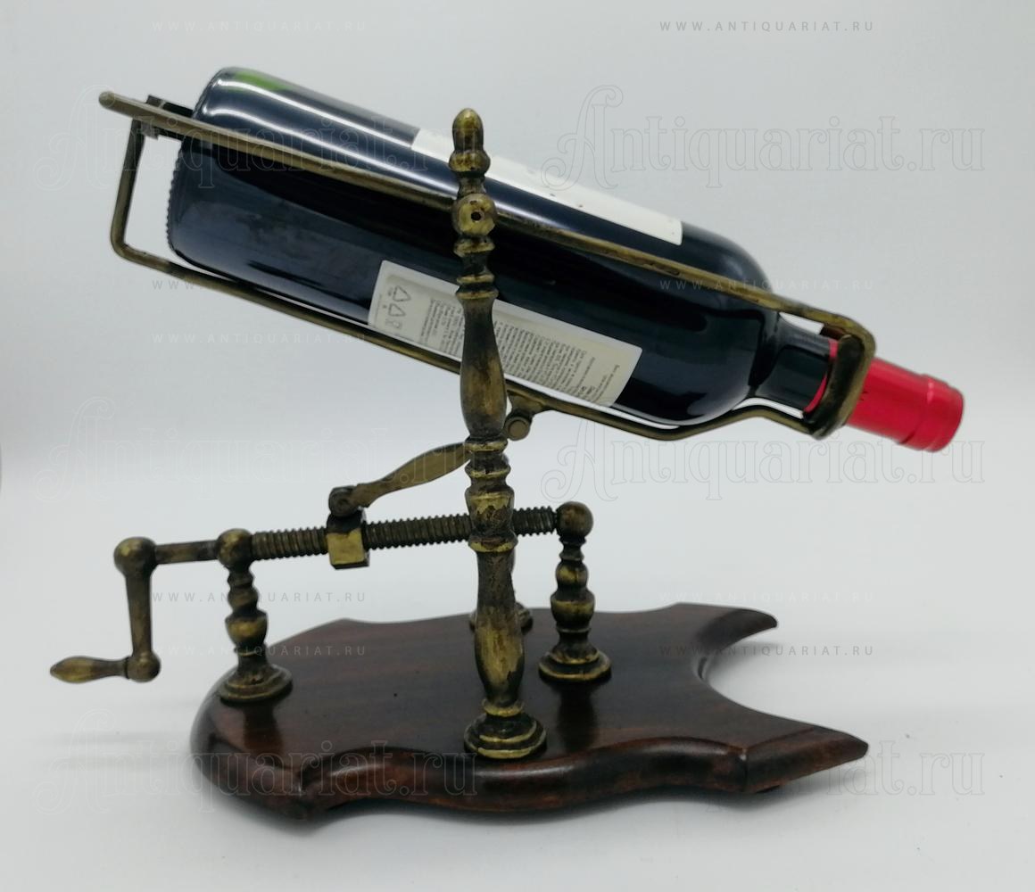 Подставка из красного дерева. Поворачивая ручку машинка плавно наклоняет бутылку с вином для декантации.