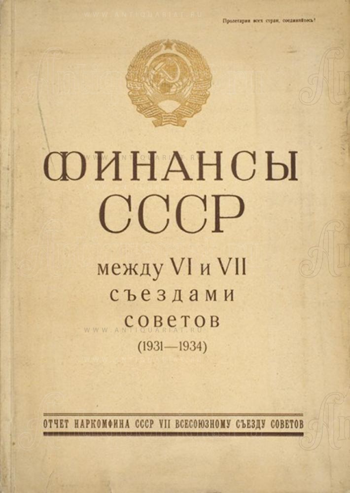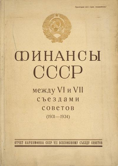 Финансы СССР между VI и VII съездами Советов (1931-1934). Отчет Наркомфина СССР VII Всесоюзному Съезду Советов. М.: Госфиниздат, 1935. Портр., 66 с., табл.