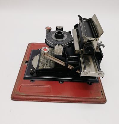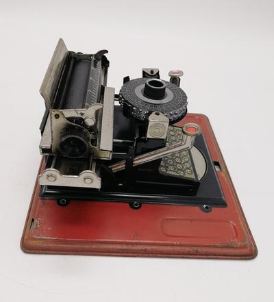 Детская игрушка осначена поварачиваюшимся шрифтовым барабаном, переводом с заглавных на прописные буквы. Подвижная каретка для заправки мелкоформатных листов бумаги. На данной игрушке ребёнок вполне может освоить и понять принцип работы класической печатной машинки.