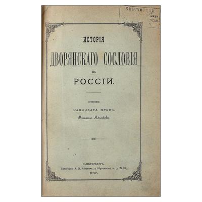 В книге историка и генеалога Михаила Тихоновича Яблочков (1848-1906) подробно описывается длительный процесс становления дворянского сословия, особое внимание уделено его истокам, уходящим, по мнению автора, своими корнями в эпоху «до Варягов».