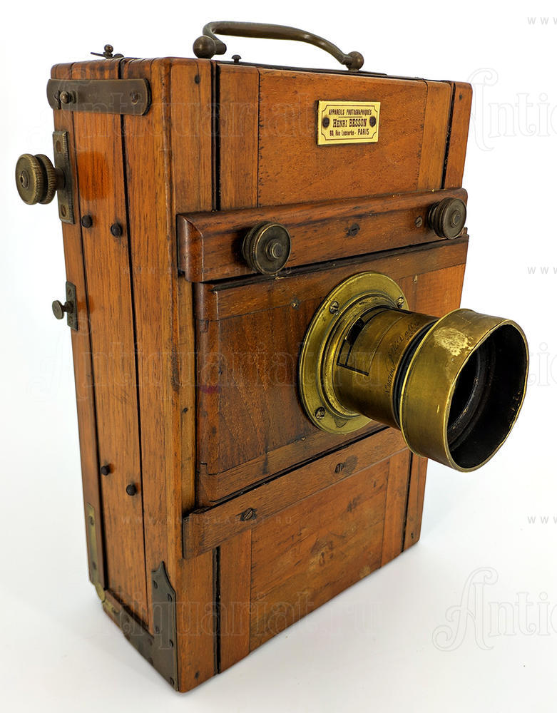 Бирка из костяной пластины на корпусе говорит о принадлежности данной камеры одному из парижских фотоателье. Аппараты такого типа были предназначены для использования стеклянных фотопластин.
