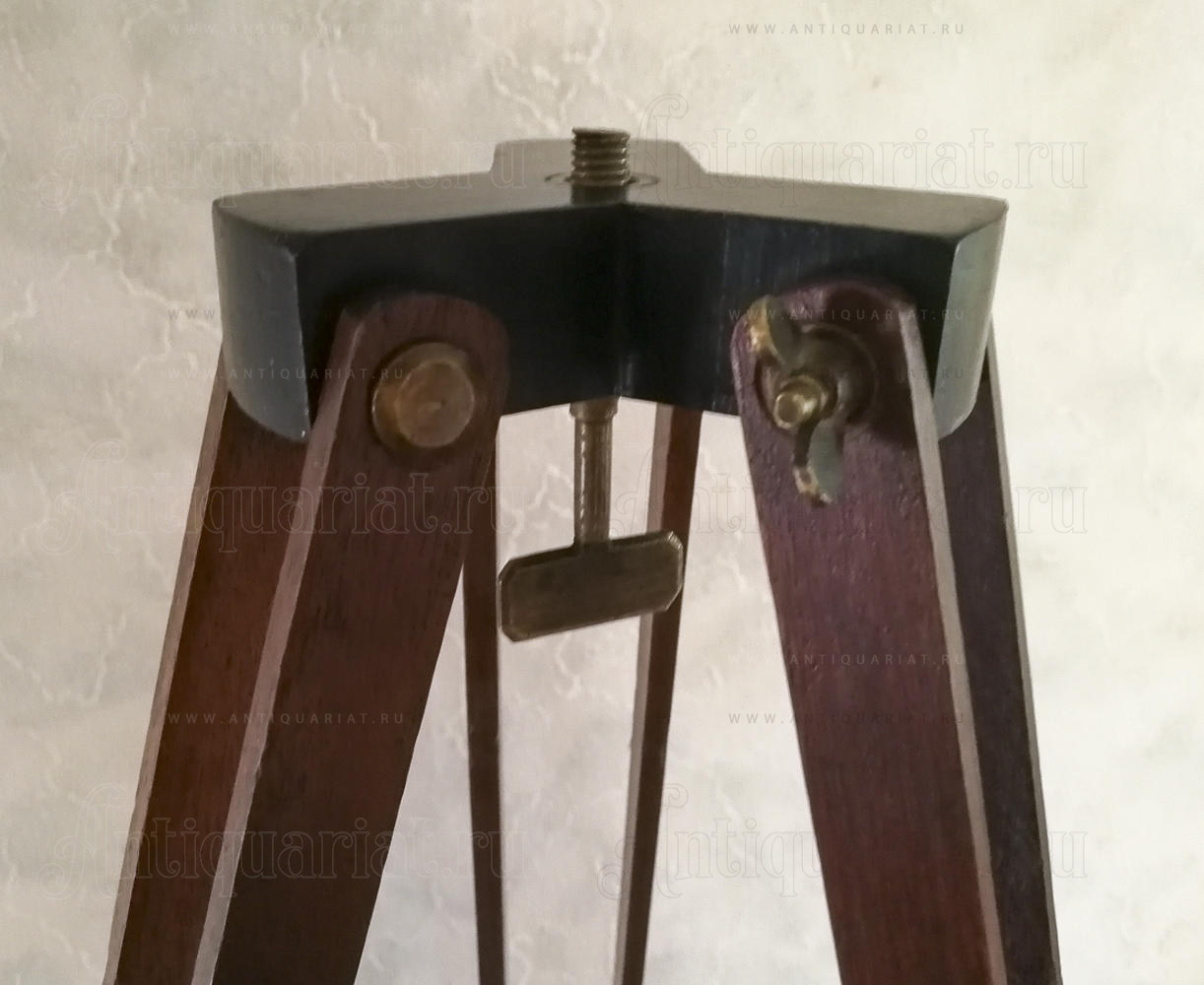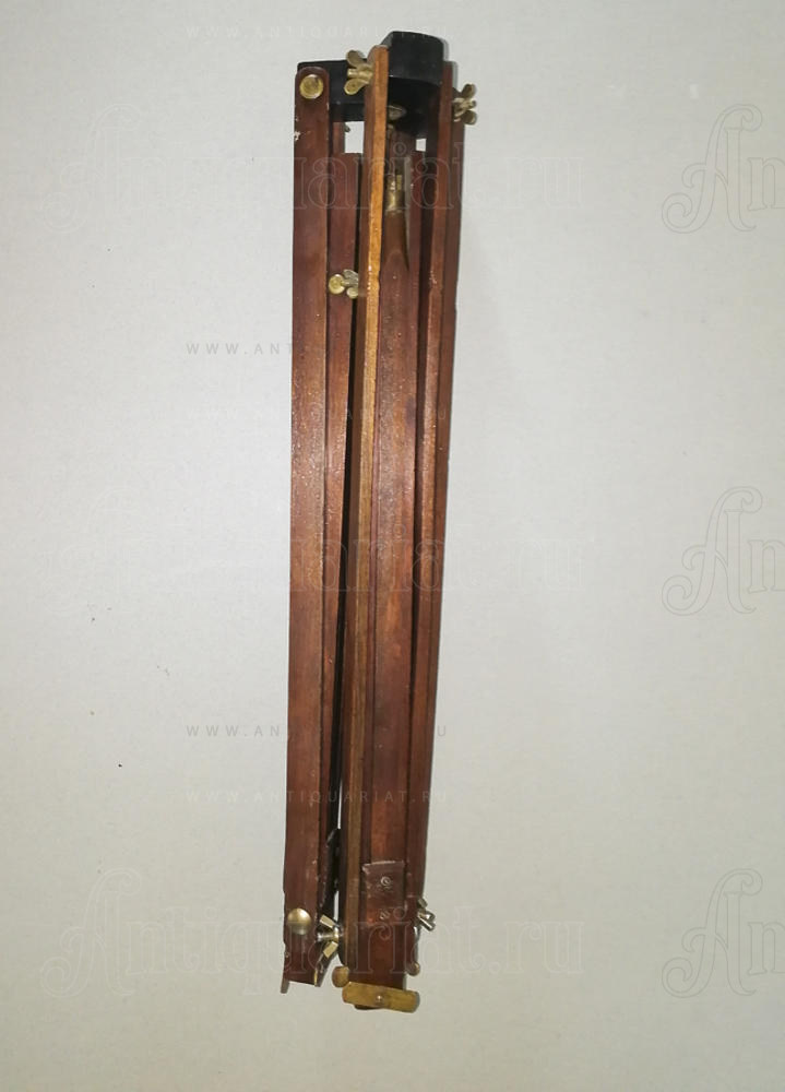 Штатив изготовлен из древесины красного дерева, отделка шелаком. Максимальная высота в рабочем состоянии - 130 см. Длина в собранном состоянии - 58 см.