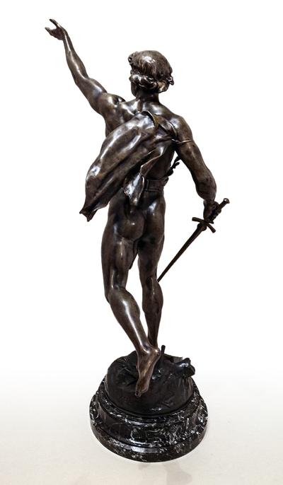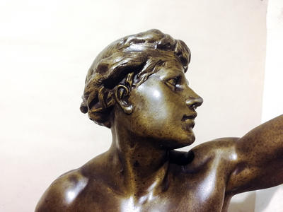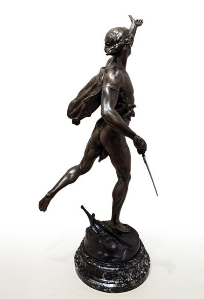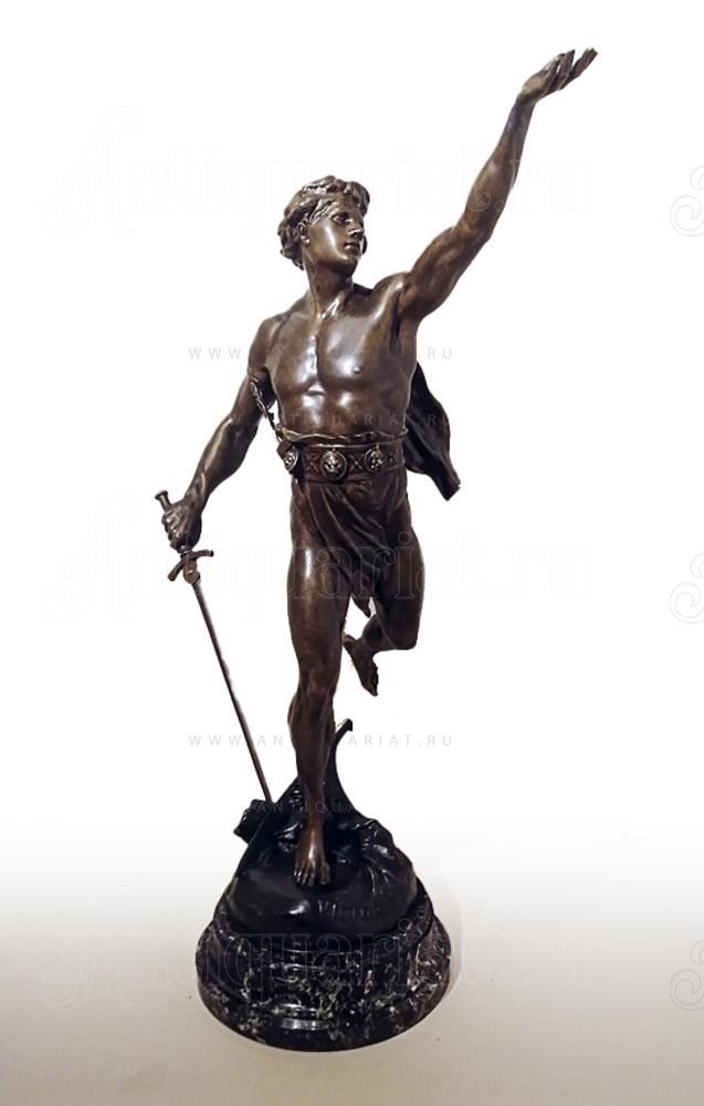 Фигура «Победа» (от лат. Victoria — «победа»), созданная известным французским скульптором Эмилем Пико (Пиколь). Скульптура изображает молодого юношу с мечом, вскинувшего одну руку вверх, что олицетворяет момент доблестной победы над врагом. Установлена на пьедестале из зеленого мрамора. Фигура имеет изящную и качественную детальную проработку. Скульптуры такого размера и качества редко выставляется на продажу. Скульптура сделана из шпиатра и украшена литейным штампом. Подпись "E. PICAULT". Французское название скульптуры "VICTORIA" (внизу скульптуры).