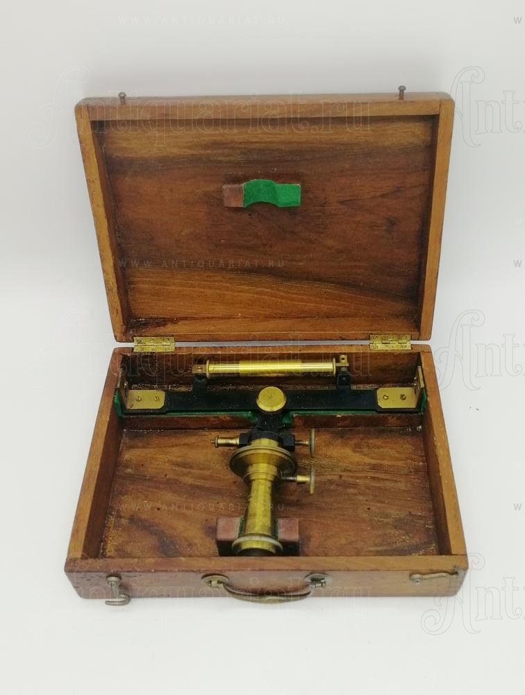 Прибор изготовлен из бронзового сплава. Для хранения и переноски помещён в футляр орехового дерева. В оригинальной комплектации и хорошей сохранности. Указаны размеры футляра.