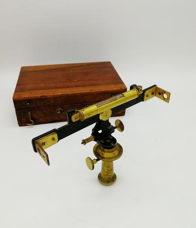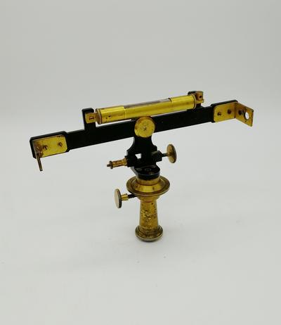 Это прибор был предшественником современного нивелира. Данный экземпляр является геодезическим уровнем "pinnule", сконструированным Альберти (Alberti 1404 -1472), который впоследствии усовершенствовали Гюйгенс, Ла Ир, Мариотт, Пикард, аббат Пара и Грибоваль (Huygens, La Hire, Mariotte, Picard, d'Abbe Para et Gribeauval).