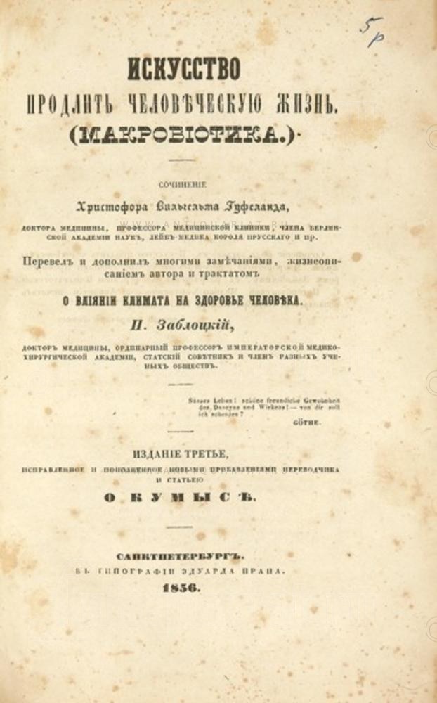 Перевел и дополнил многими замечаниями, жизнеописанием автора и трактатом «О влиянии климата на здоровье человека» П. Заблоцкий.