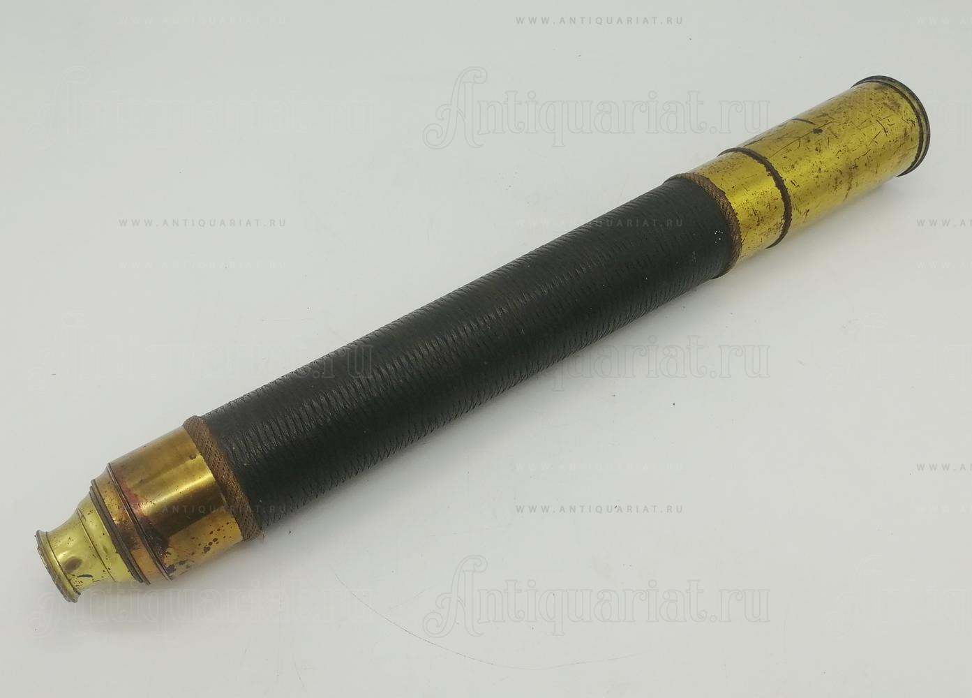 Двухколенная подзорная труба в корпусе с кожаной оплёткой. Оптика оригинальная и в исправном состоянии (без замутнений). Все колена хорошо выдвигаются. Клеймо "Horne & Thornthwaite, 121.122 & 123, Newgate Street, London"