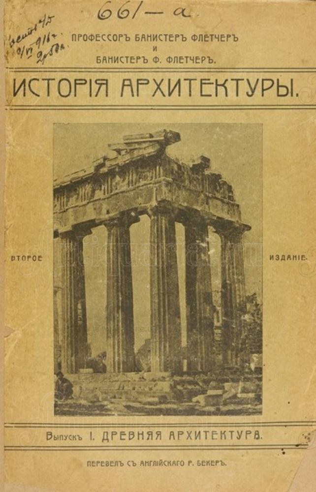 Флетчер Ф. История архитектуры, составленная по сравнительному методу / пер. с 5-го изд. Р. Бекер.В 3 вып. Вып. 1-3. 2-е, пересм. изд. СПб.: Изд. Р. Бекера, 1913-1914.