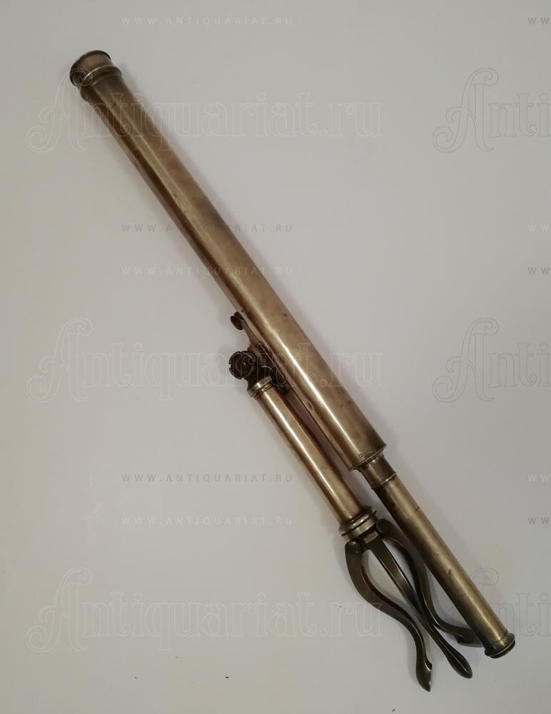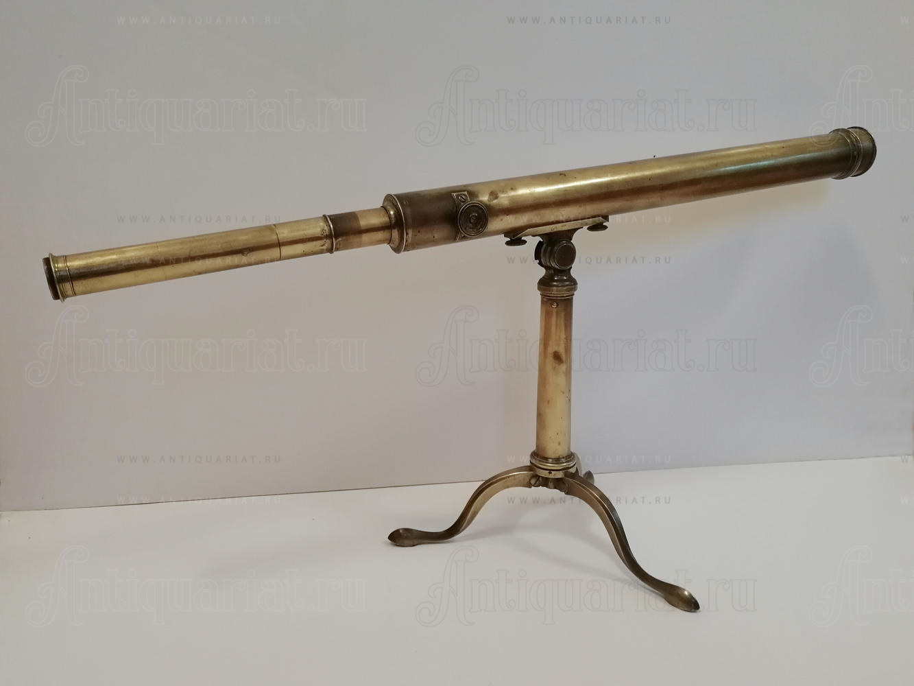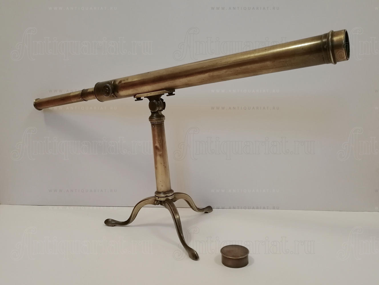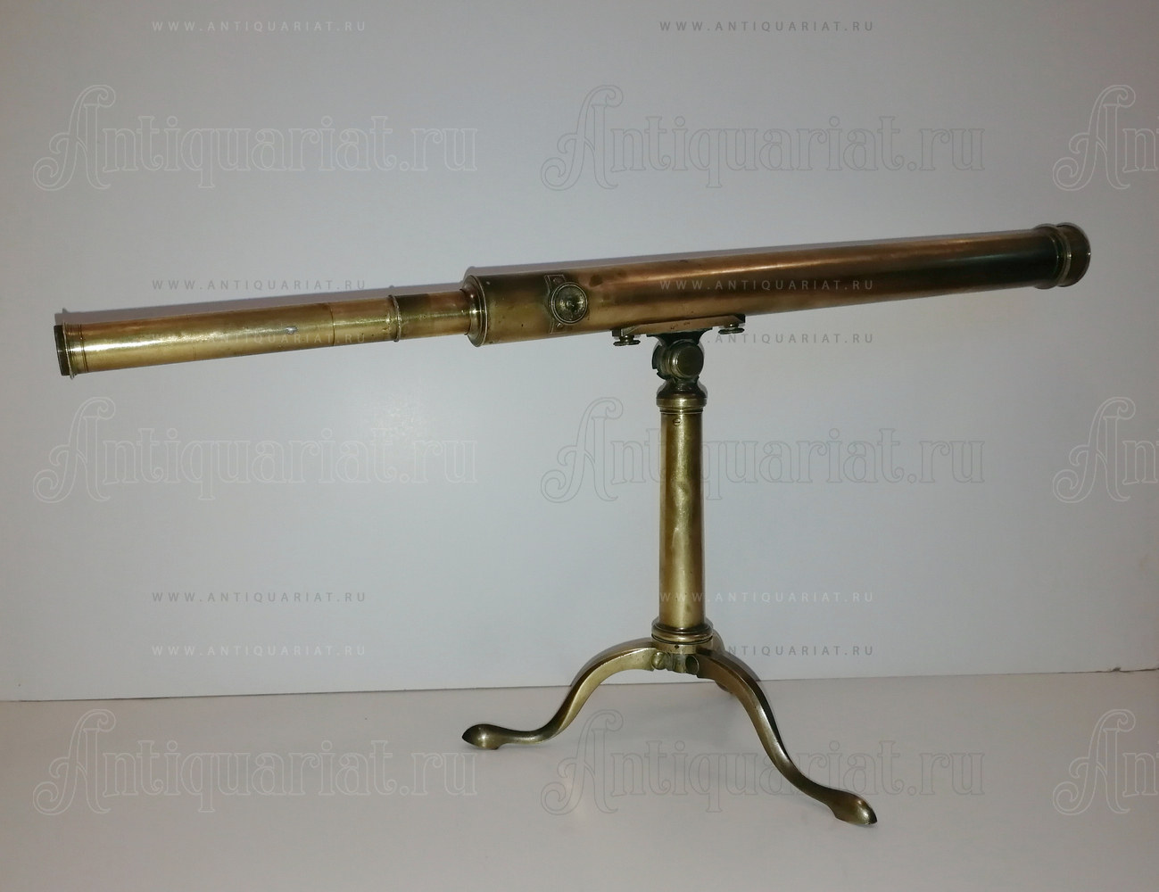 Старинный английский телескоп оригинальной комплектации. В рабочем состоянии. Имеются незначительные вмятины и царапины характерные времени.