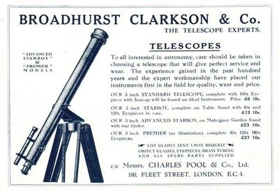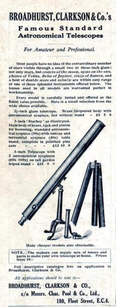Бродхерст стал партнером в бизнесе в 1892 году, но поссорился с Кларксоном, в результате чего партнерство распалось в 1908 году. Бродхерст быстро переехал на Фаррингдон-роуд 63 и назвал здание "Домом телескопа" ("Telescope House").