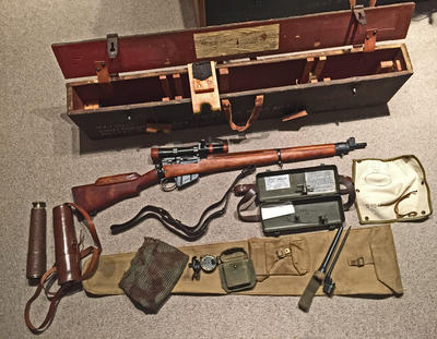 Снайперская военная подзорная труба фирмы "Broadhurst Clarkson & Co", Англия. Телескоп (подзорная труба) входил в комплект снаряжения элитной разведки британских снайперов в 1910-1945 гг., использовался для изучения и ориентировки на местности.