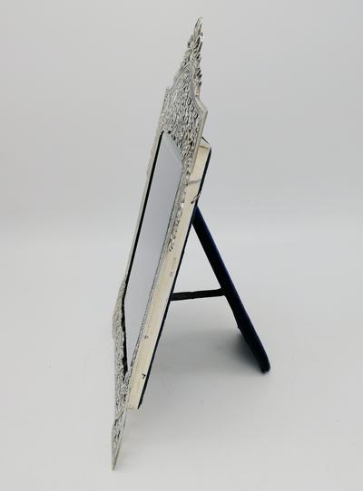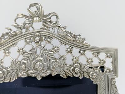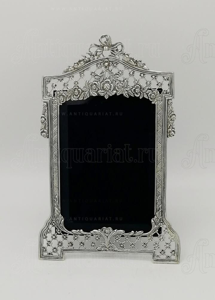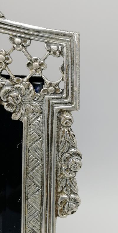 Прямоугольная ажурная фоторамка декорирована геометрическим и растительным орнаментом.