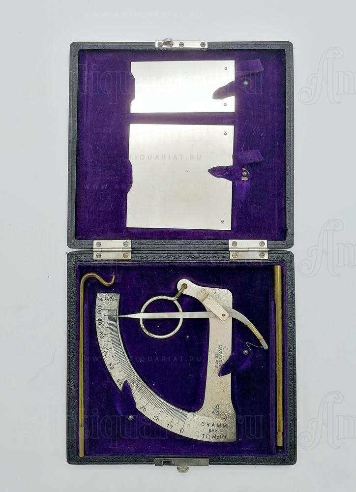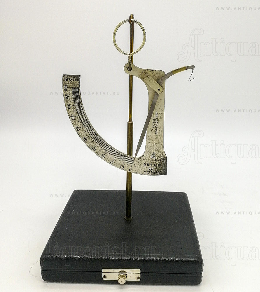 Прибор изготовлен на фабрике по производству измерительных приборов Louis Schopper Leipzig (Луи Шоппера, Лейпциг). Весы в оригинальном футляре, полной комплектации и хорошем состоянии.