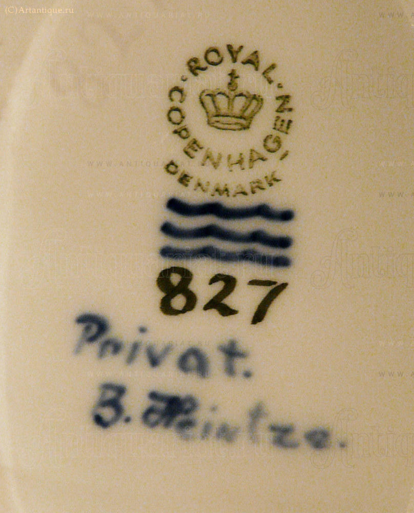Подглазурная синяя марка "три волны", зелёная "ROYAL COPENHAGEN". Конец 1960-начало 1970-х годов