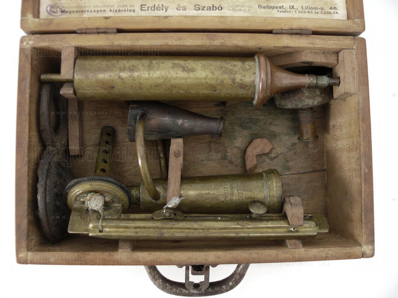 Эбулиометр системы Маллиганд 1937 года производства Трансильванской фабрики научных приборов, химических весов и школы Сабо (Erdély és Szabó). На Национальной выставке винограда и вина прибор получил золотую медаль в 1922 году. Полная комплектация в оригинальной коробке.