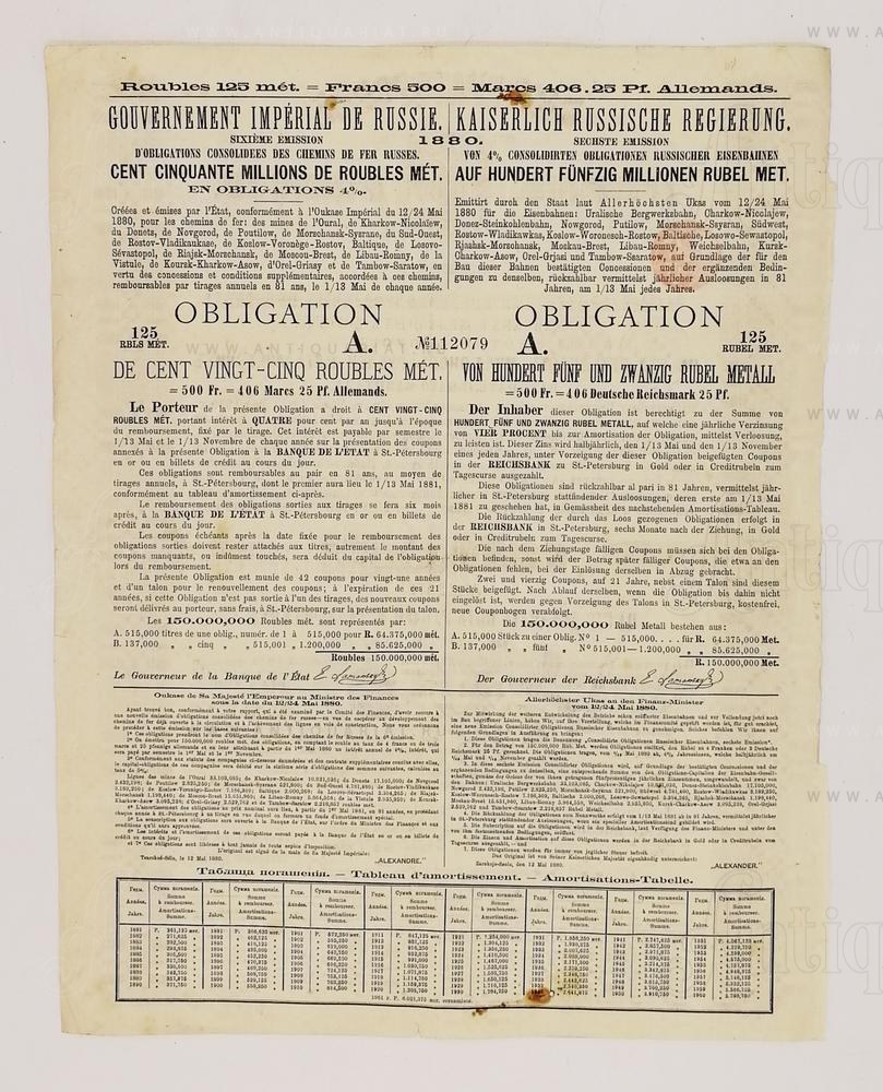 Выпущена "Императорское Россiйское Правительство" на основании ВЫСОЧАЙШЕГО указа 12/24 мая 1880года.