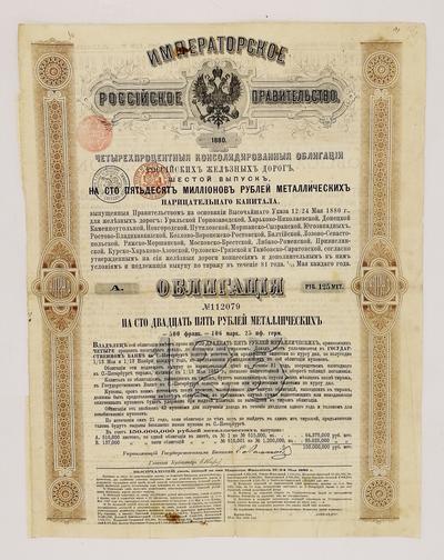 "Консолидированныя Россiйскiя Четырехпроцентныя Желѣзнодорожныя Облигацiи" шестой серии