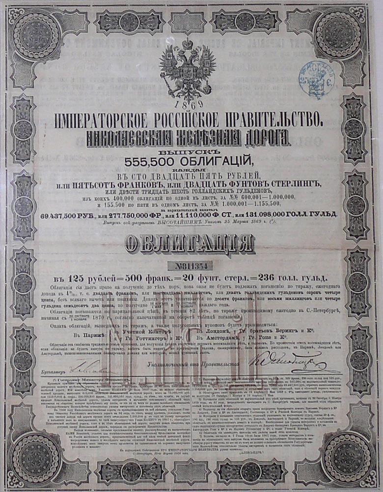 Дорога явилась первой двухпутной казённой железной дорогой в России и положила начало созданию в России железнодорожной сети общегосударственного значения. Она была сооружена в 1842-1851 годах между Петербургом и Москвой, её протяжённость составила 604 версты (645 км).