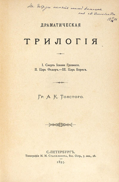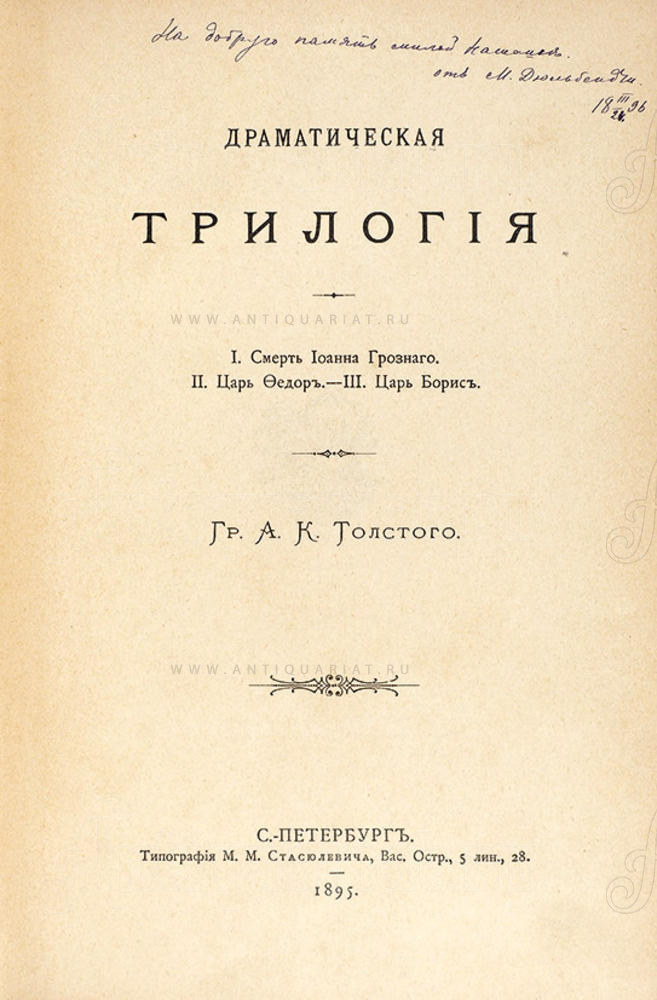 ["В русской литературе ничего подобного не было...«]Толстой, А.К. Драматическая трилогия: I. Смерть Иоанна Грозного; II. Царь Федор; III. Царь Борис.
