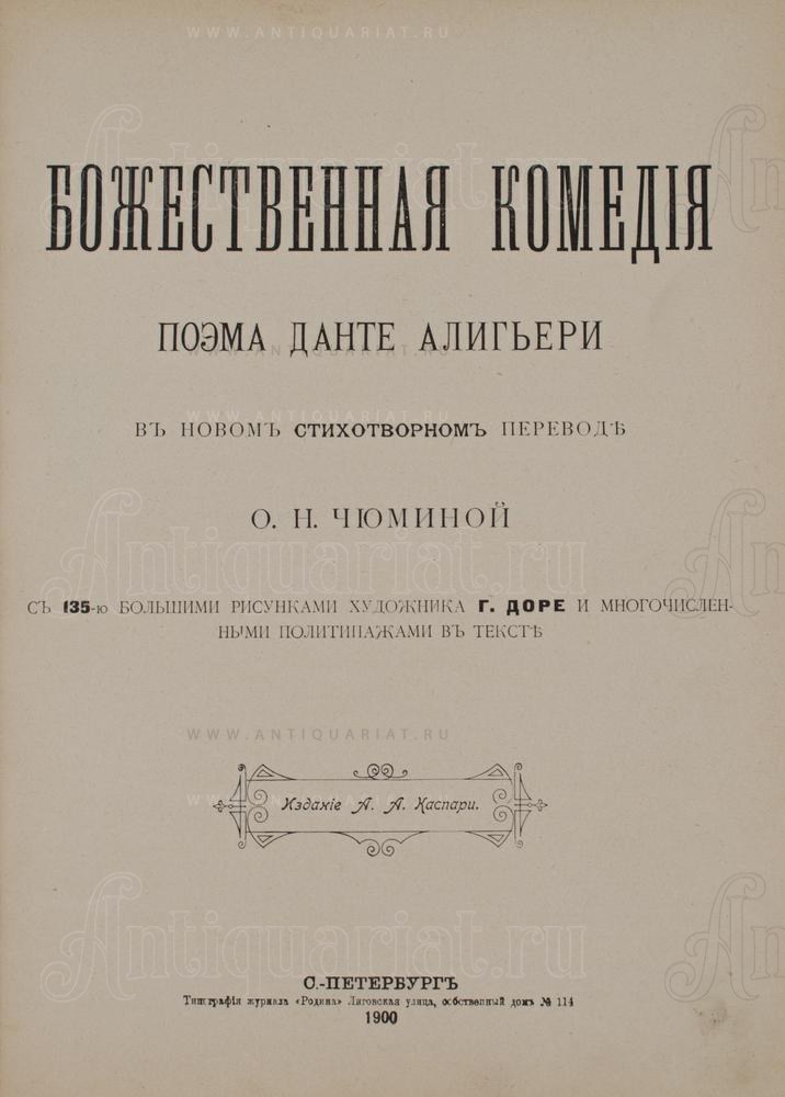 С 135-ю большими рисунками художника Г. Доре. Санкт-Петербург, 1900 год. Издание А.А.Каспари. Размер книги: 315*240мм.